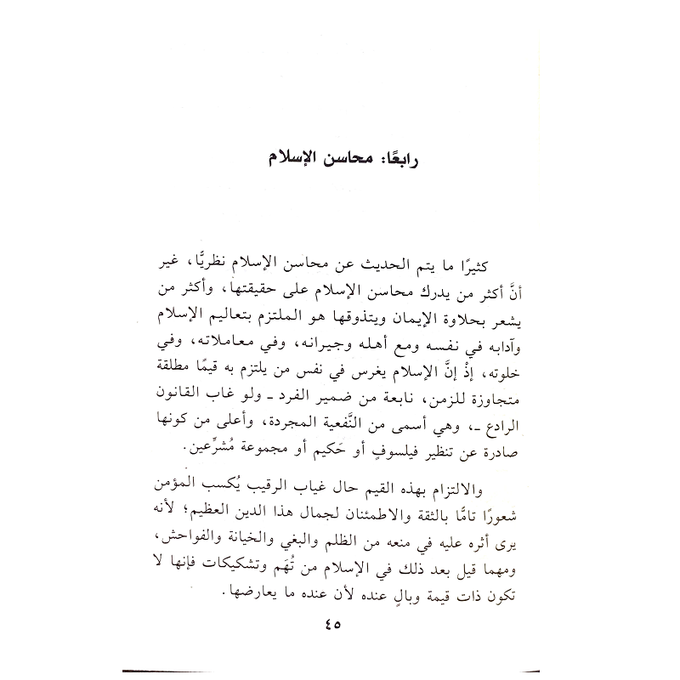يسعى الكتاب إلى إعادة تقديم أصول الإسلام وثوابته الكبرى في إطار مترابط ومتكامل، يساعد القارئ على رؤية الصورة الكاملة للدين، وفهم منطق الإيمان بالله، والنبوة، والبعث، والشريعة، من خلال سرد عقلاني وعاطفي يجمع بين الحجّة والإقناع.